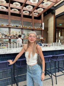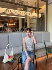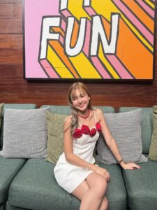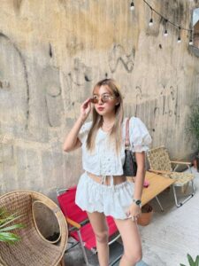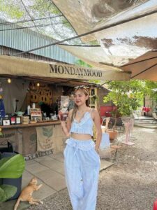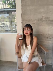 อย่างรูปนี้เราชอบนะ รอยยิ้มที่น้องยืนย้อนแสง แต่รอยยิ้มบาง ตาหรี่เล็กลง แบบจริงใจ รอยยิ้มแบบนี้ใครเจอเป็นตกหลุมรักแบบฟินความรักโลกสีชมพูแน่นอน ต่อด้วยลุคนี้ที่ไปทำคอนเทนต์ต้อนรับวันวาเลนไทน์ น้องไปดินเนอร์กับใครก็ไม่รู้ รู้แต่ว่าได้ช่อดอกกุหลาบยักษ์เป็นของขวัญวันวาเลนไทน์ด้วยนะ ชอบลุคที่น้องใส่ เป็นเดรสสั้นตัวเล็กสีฟ้าขาวให้ฟีลสาวน่ารักตัวเล็กกำลังมีความสุข จากความรักของตัวเอง จัดว่าดีเลยน้องในลุคนี้